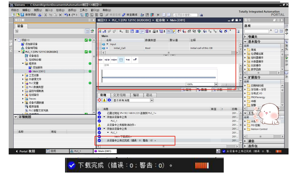 5.上载及下载程序,如下图(博图版本与程序需要一一对应,不同的版本及程序存在不兼容的情况,用户使用请注意版本跟程序兼容)。